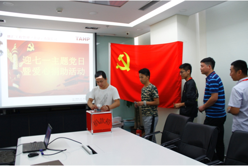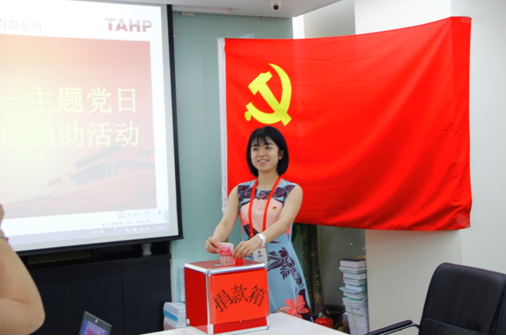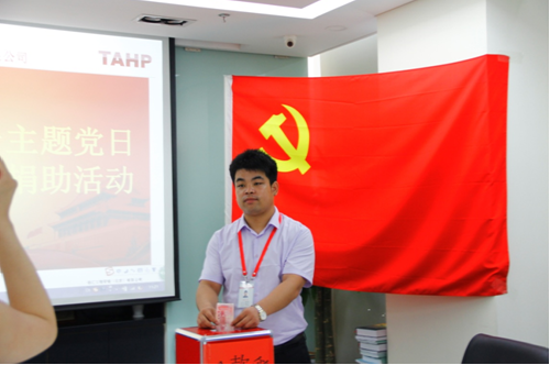 此次主題黨日活動有重溫入黨誓詞、現場愛心捐助兩項內容。參加活動的全體黨員又在黨旗下,重溫了入黨誓詞,鏗鏘有力的誓詞,強烈震撼著在場的每一位黨員的心靈。隨后,全體黨員帶頭進行了1對1捐資助學愛心捐款活動,各部門員工也踴躍參加,場面非常有序和諧。下一步公司不僅自身要捐款,而且還要發動分支機構進行捐款,力爭8月份完成捐款活動,為更多的貧困學生家庭提供義務教育學費,為回饋社會做出我們企業應有的貢獻。
