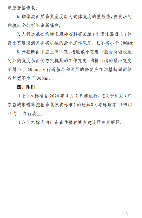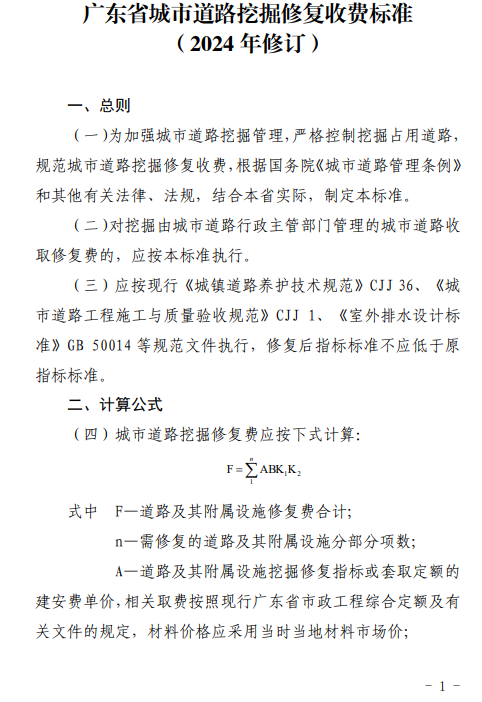 廣東省住房和城鄉(xiāng)建設(shè)廳關(guān)于印發(fā)《廣東省城市道路挖掘修復(fù)收費(fèi)標(biāo)準(zhǔn)(2024年修訂)》的通知