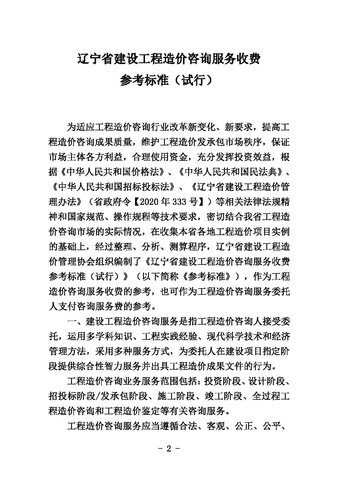 遼寧省建設工程造價管理協(xié)會《關于印發(fā)<遼寧省建設工程造價咨詢服務收費參考標準(試行)>的通知》(遼建價協(xié)發(fā)(2024)1號)