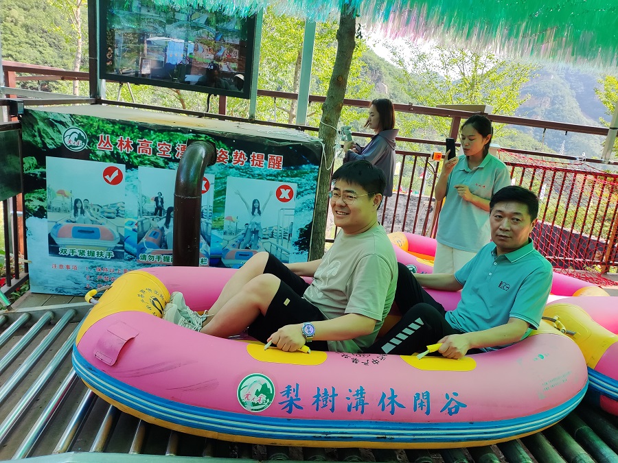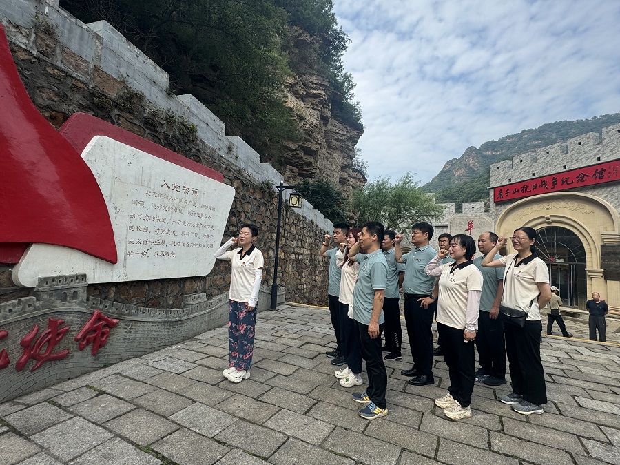 第二部分是結合今年黨紀學習教育開展,在平谷組織黨建活動,參觀了魚子山抗戰紀念館,重溫了入黨誓詞,進行了管理層黨員突擊隊和青年突擊隊授旗儀式,使大家了解了歷史,建立了共識,從而增強了團隊的凝聚力。隨后公司組織大家在大峽谷景區和梨樹溝景區進行了游覽。