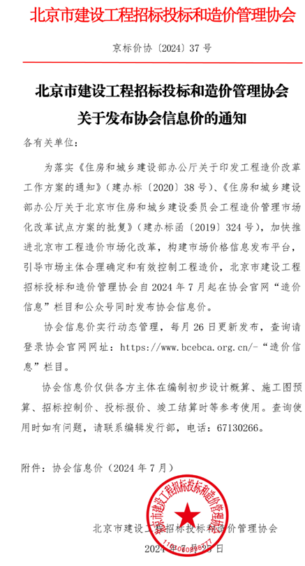 北京市建設工程招標投標和造價管理協會《關于發布協會信息價的通知》