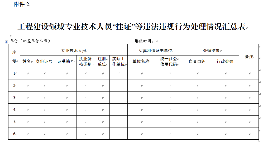 2.工程建設領域專業技術人員“掛證”等違法違規行為處理情況匯總表