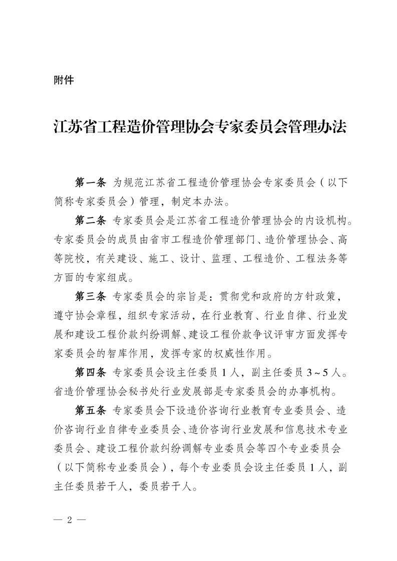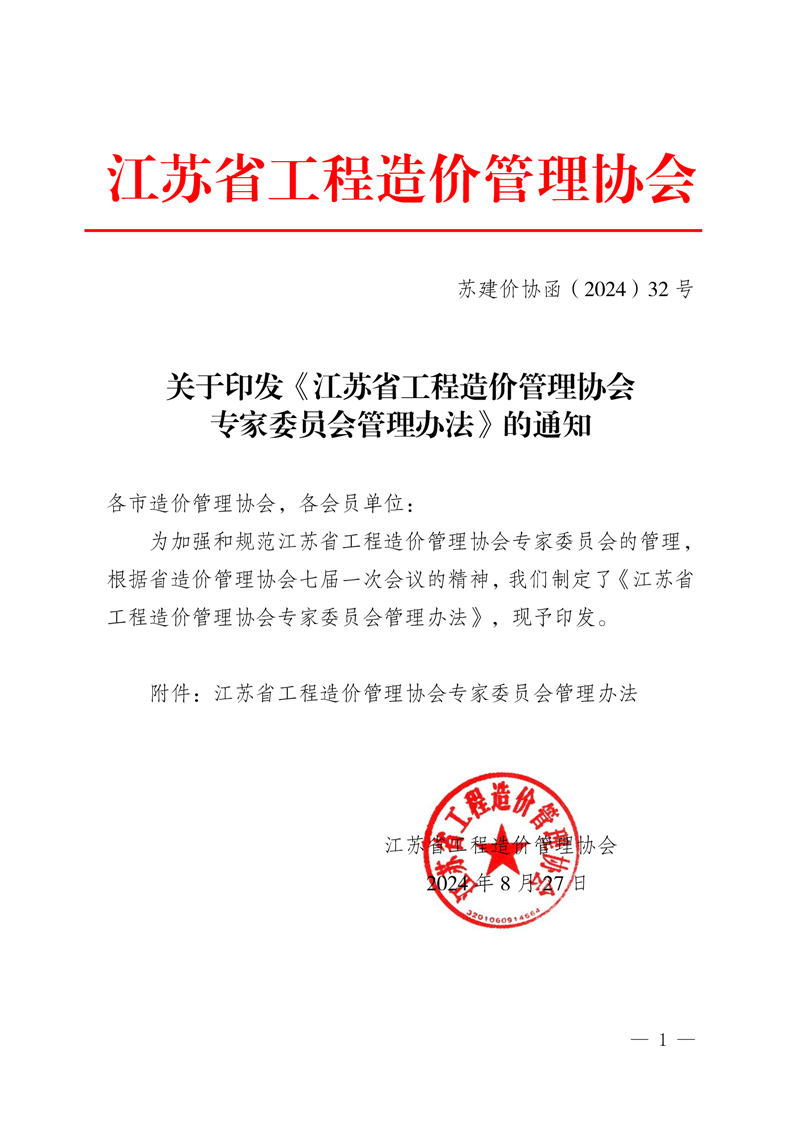 江蘇省工程造價管理協會關于印發《江蘇省工程造價管理協會專家委員會管理辦法》的通知
