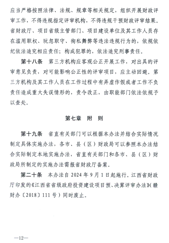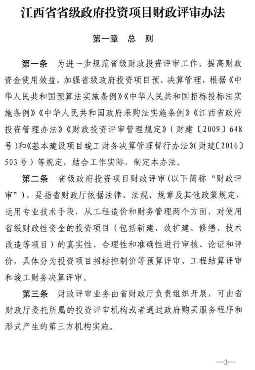 江西省財政廳關于印發《江西省省級政府投資項目財政評審辦法》的通知
