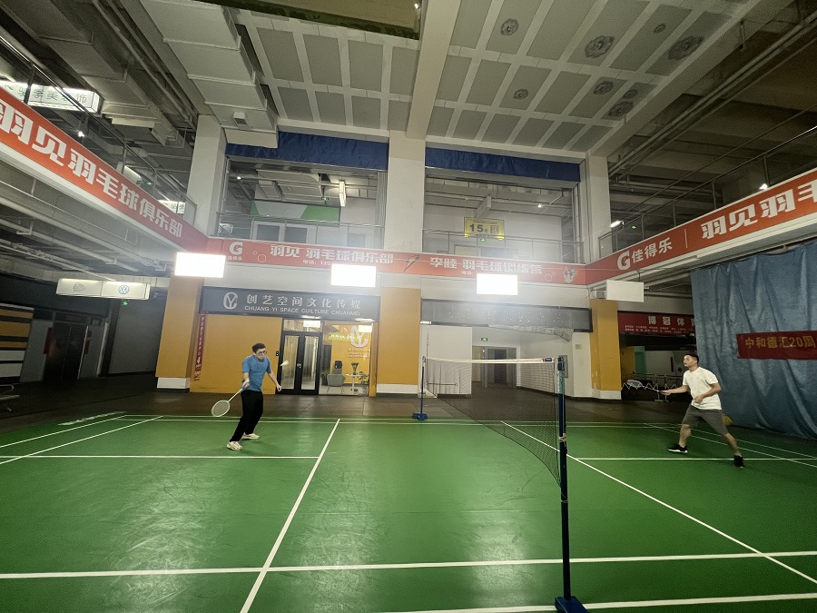 中場休息階段,大家又自發(fā)組隊,進行了精彩的男女雙打比賽。