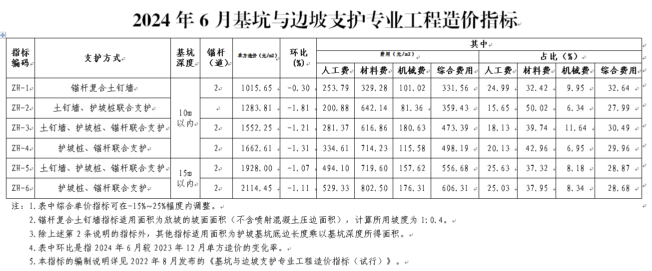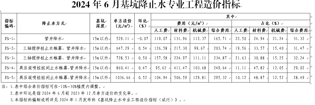 北京市住房和城鄉(xiāng)建設(shè)委員會發(fā)布《2024年6月基坑與邊坡支護專業(yè)工程、基坑降止水專業(yè)工程造價指標(biāo)》