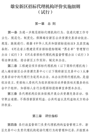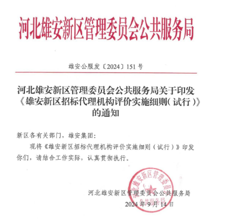 河北雄安新區管理委員會公共服務局關于印發《雄安新區招標代理機構評價實施細則(試行)》的通知