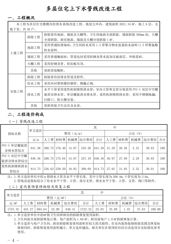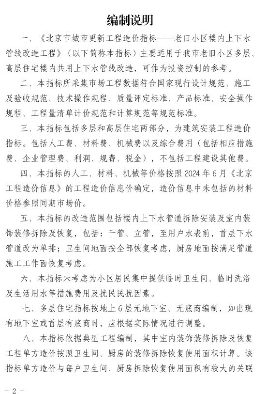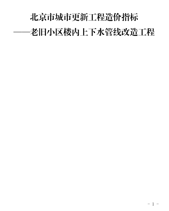 北京市住房和城鄉建設委員會發布《北京市城市更新工程造價指標——老舊小區樓內上下水管線改造工程》