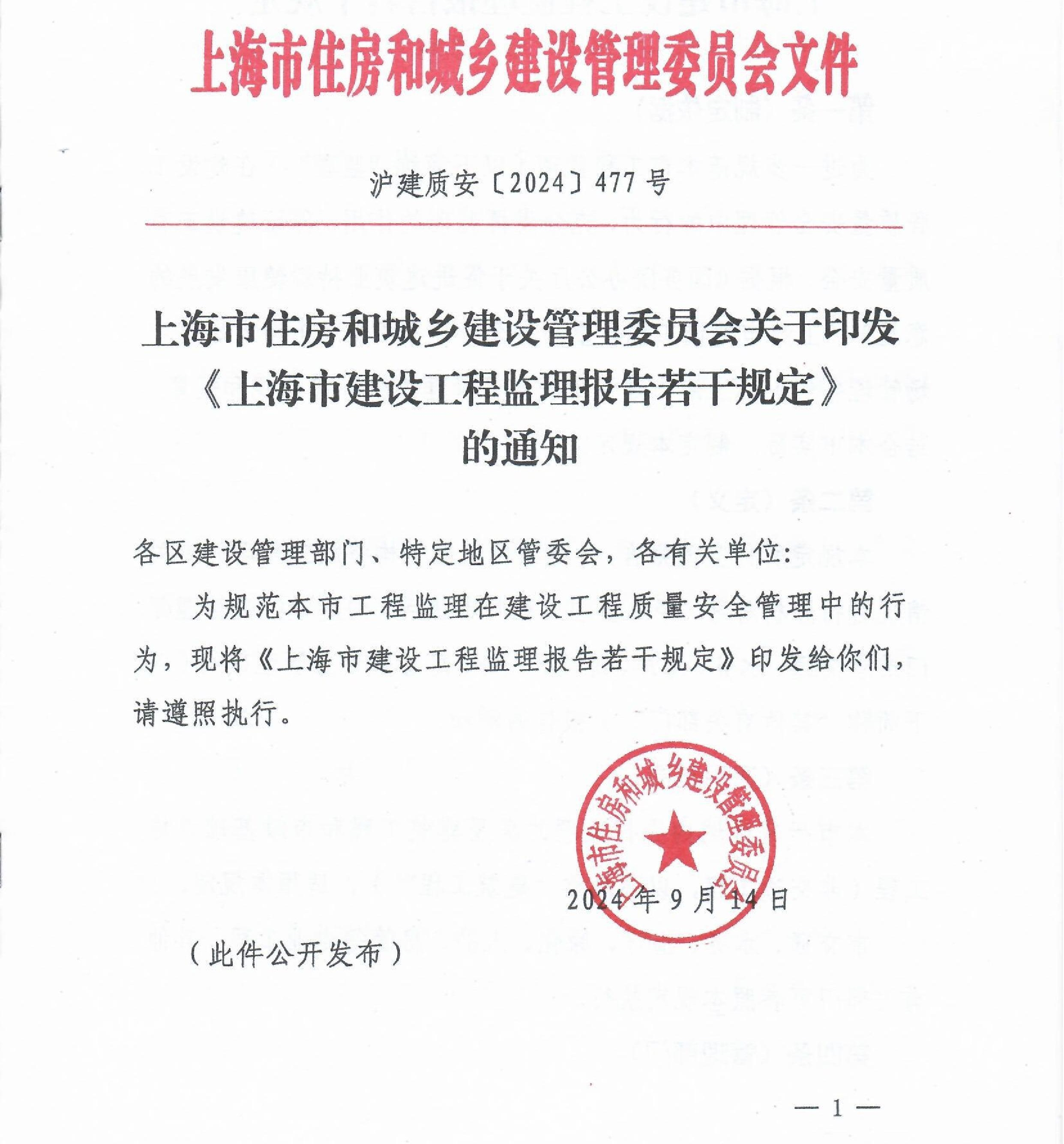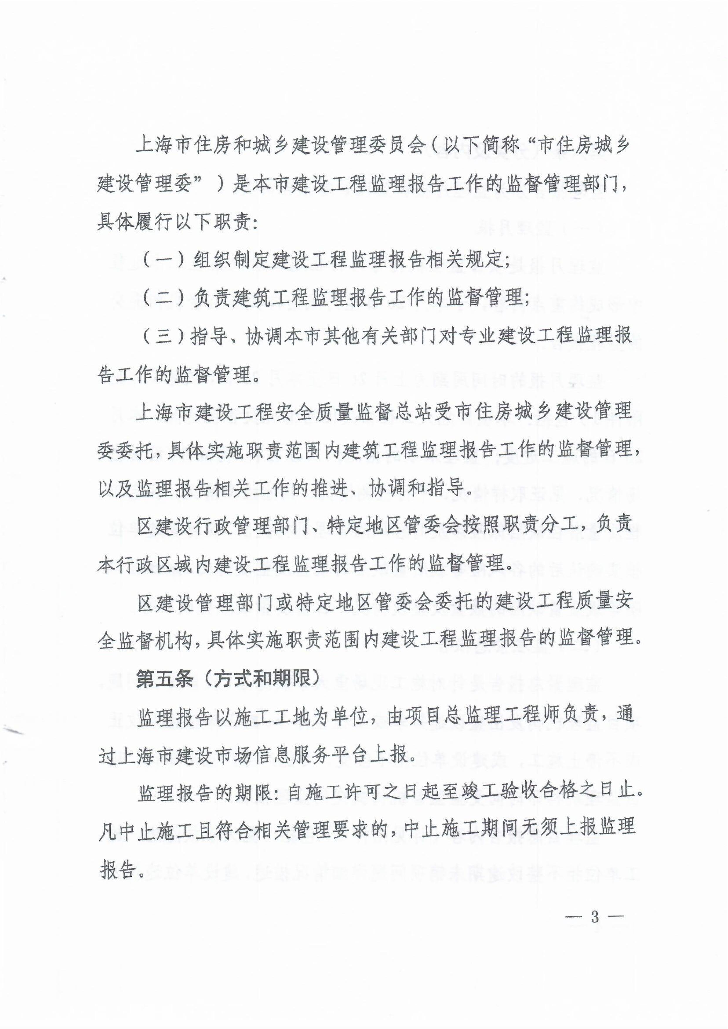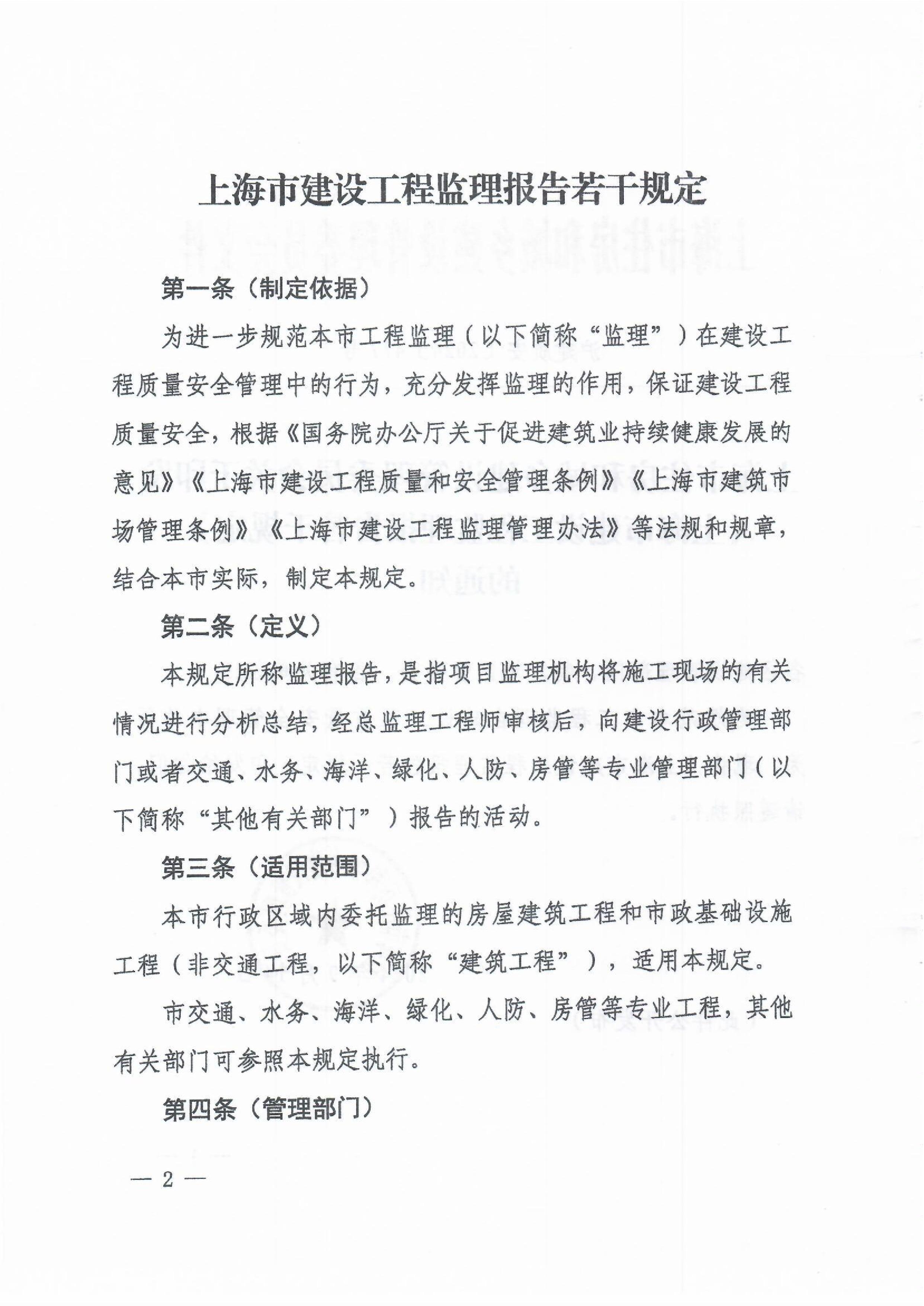 上海市住房和城鄉(xiāng)建設(shè)管理委員會關(guān)于印發(fā)《上海市建設(shè)工程監(jiān)理報(bào)告若干規(guī)定》的通知