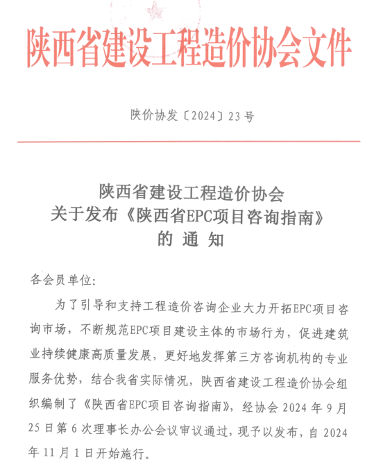 陜西省建設(shè)工程造價(jià)協(xié)會(huì)關(guān)于發(fā)布《陜西省EPC項(xiàng)目咨詢指南》的通知