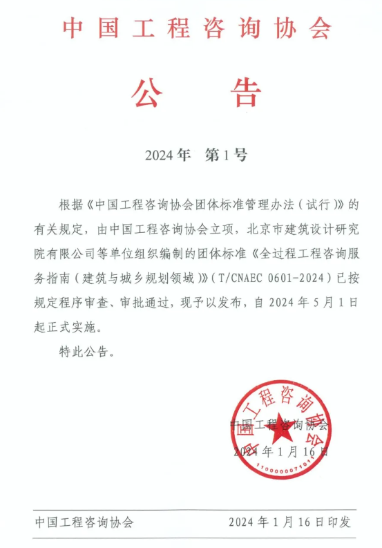 中國工程咨詢協(xié)會(huì)發(fā)布《全過程工程咨詢服務(wù)指南(建筑與城鄉(xiāng)規(guī)劃領(lǐng)域)》T/CNAEC0601-2024