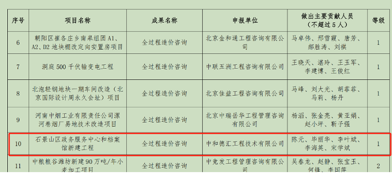 在2025年度北京市建設工程招標投標及造價成果文件等級評定中,我公司承攬的石景山區政務服務中心和檔案館新建工程榮獲“全過程造價成果類”一級獎項!北京東南高速公路智慧物流港項目(一期)施工準備階段工程榮獲“清單最高投標限價成果類”二級獎項!