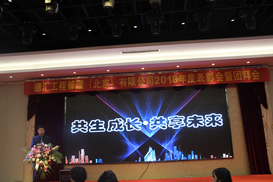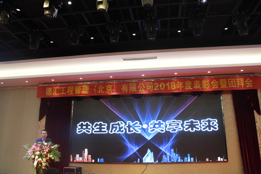 德匯工程管理(北京)有限公司于2019年1月18日(周五)在北京盈坤維景酒店召開2018年度表彰會(huì)暨團(tuán)拜會(huì)。集團(tuán)公司領(lǐng)導(dǎo)、兄弟公司代表、公司領(lǐng)導(dǎo)、分公司和運(yùn)營中心事業(yè)部負(fù)責(zé)人、公司全體員工共計(jì)310余人參加了本次年會(huì)。