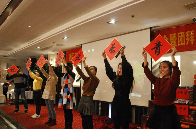 表彰會結束后,詹芙蓉董事長祝酒,晚宴正式開始。晚會由公司領導、員工自編自演的節目組成,精彩紛呈,高潮迭起,并穿插著激動人心的抽獎活動,現場氣氛熱烈,歌聲、掌聲、歡呼聲不時在現場蕩漾。這是一場歡樂的盛會,不僅展示了全體員工積極向上的青春風貌,也展現了全體同仁的和諧友愛,更傳達了對公司展翅高飛的雄心壯志!2017年,讓我們齊心協力,努力拼搏,共同期待德匯的明天會更加輝煌!