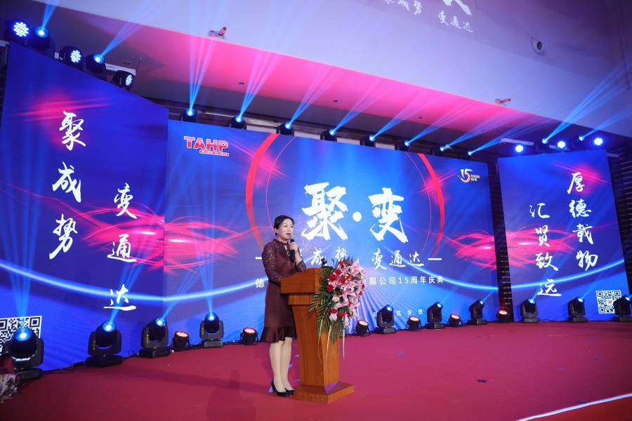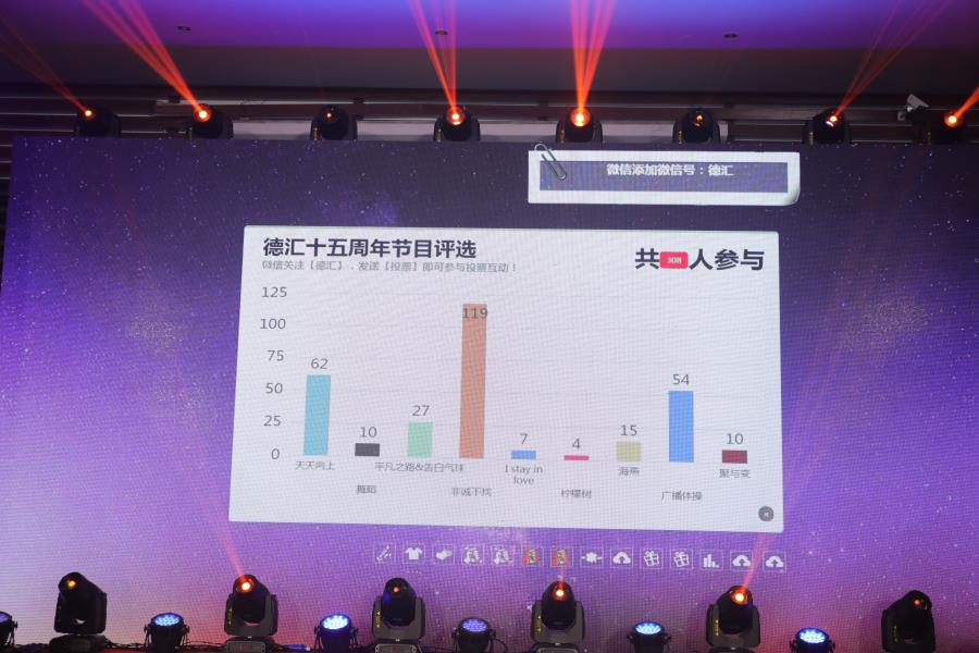 此次慶典活動參加人員除了全體員工之外,還有協會領導、集團領導、業主朋友,合作單位、分公司和運營中心負責人,大家共同分享了德匯十五周年的喜悅與精彩。慶典啟動之前播放了暖場視頻和開場視頻,十五年的拼搏、十五年的發展都濃縮在其中,一張張熟悉或陌生的面孔,一次次新的突破,讓我們重新回顧了十五年來德匯一步步走來的歷程。慶典啟動時,會場變暗,德匯化成一只激光雄鷹圍繞全場翱翔一圈,最后定格到主屏上……。啟動儀式結束后,詹芙蓉董事長發表了熱情洋溢的講話,此情此景,讓每個德匯人都心潮澎湃。