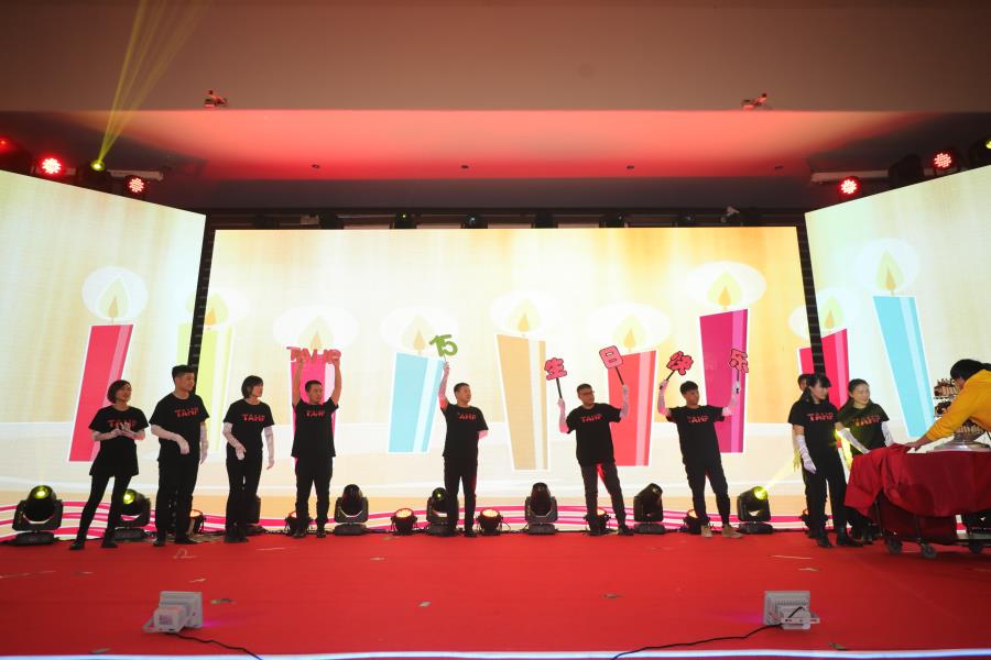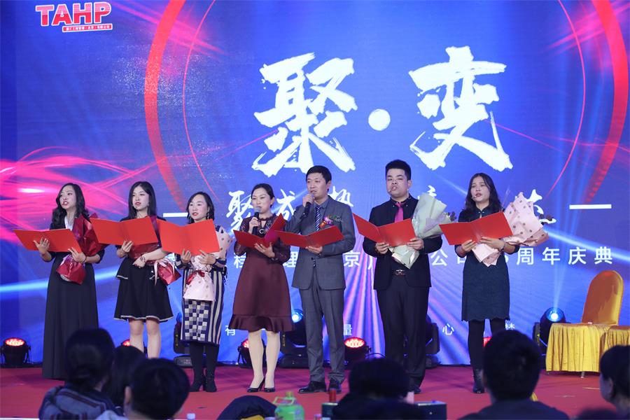 第三部分:晚宴。詹芙蓉董事長致祝酒詞,大家在一片歡聲笑語中共飲杯中酒,酒喝干,再斟滿,這是一路走來的情誼,期間我們還穿插了微信抽獎環節,共抽取三等獎10人,二等獎6人,一等獎2人,特等獎1人。伴著祝福,伴著笑語和歌曲,周年慶典的歡樂時光也隨即圓滿落幕!