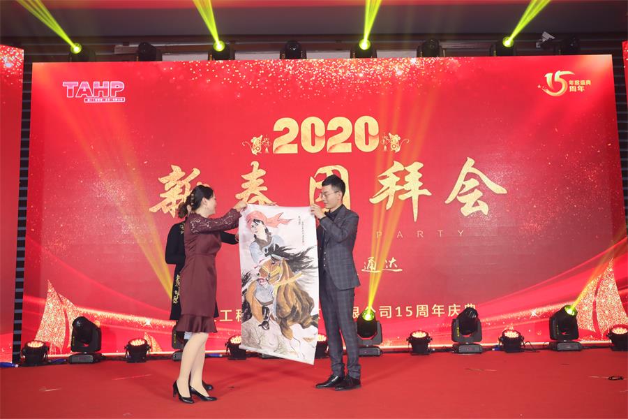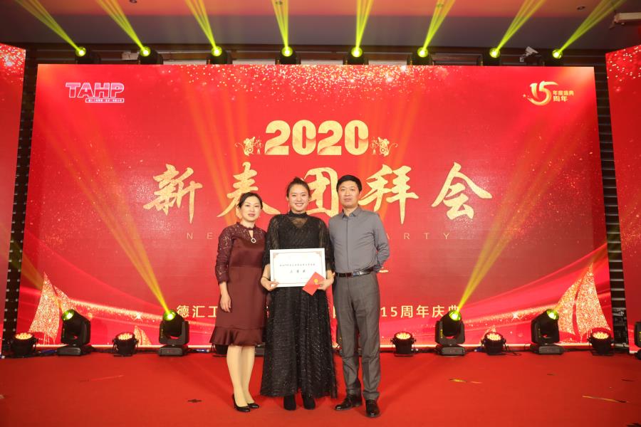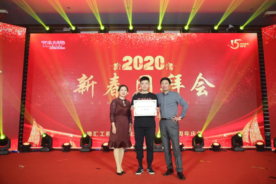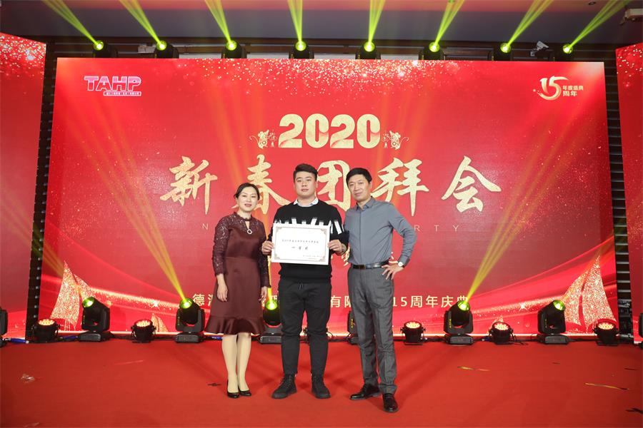 第二部分:2020年新春團拜會。公司精心準備了10個原創節目匯報演出,江西分公司專程帶來了精彩舞蹈,山東分公司現場送來了禮物。造價一部的小品《非誠不找》,表演的非常到位,引得全場笑聲、掌聲不斷,最終獲得節目評選一等獎;招標部的手影舞《天天向上》,表演形式新穎,寓意深刻,耐人尋味,當德匯15周歲生日蛋糕出現的時候把會場氣氛推向了高潮,獲得節目評選二等獎;最后公司管理層上臺亮相為大家合唱了勵志歌曲《我們都是追夢人》,臺上臺下互動,贏得了陣陣掌聲和歡呼聲!