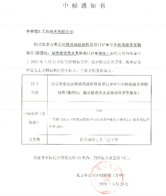 熱烈祝賀我司順利中標:北京市密云區財政局政府投資項目評審中介機構服務采購項目。