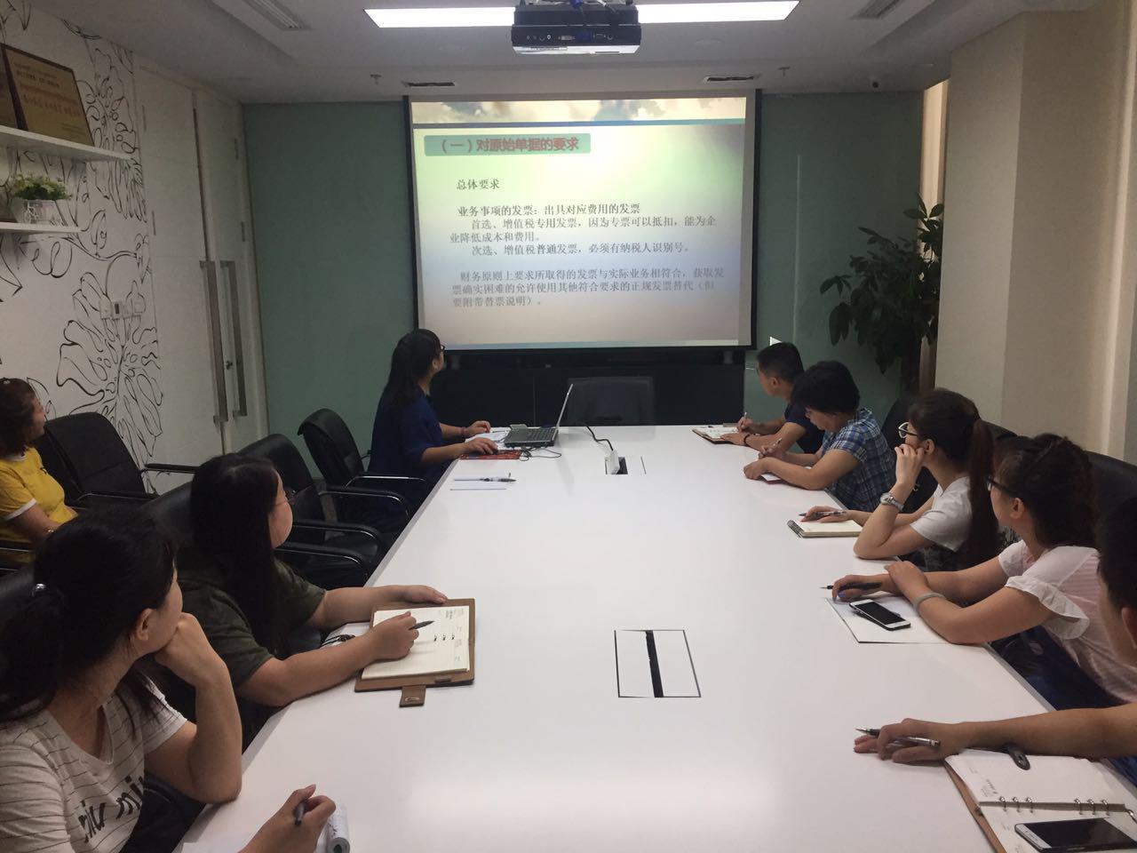 自7月1日,國家稅務總局關于發票的新規出臺以后,公司財務部按照新規的精神對內部費用報銷進行了規范,新規實施兩個月以來,財務部們針對各部門在費用報銷中存在的問題進行梳理,對開票過程中存在的疑問進行匯總整理,形成規范的培訓文檔,并對各部門相關人員進行了系統的培訓。參會人員認真學習,針對有疑惑的地方及時提問,培訓人員對各種問題認真解答。收到良好的培訓效果。